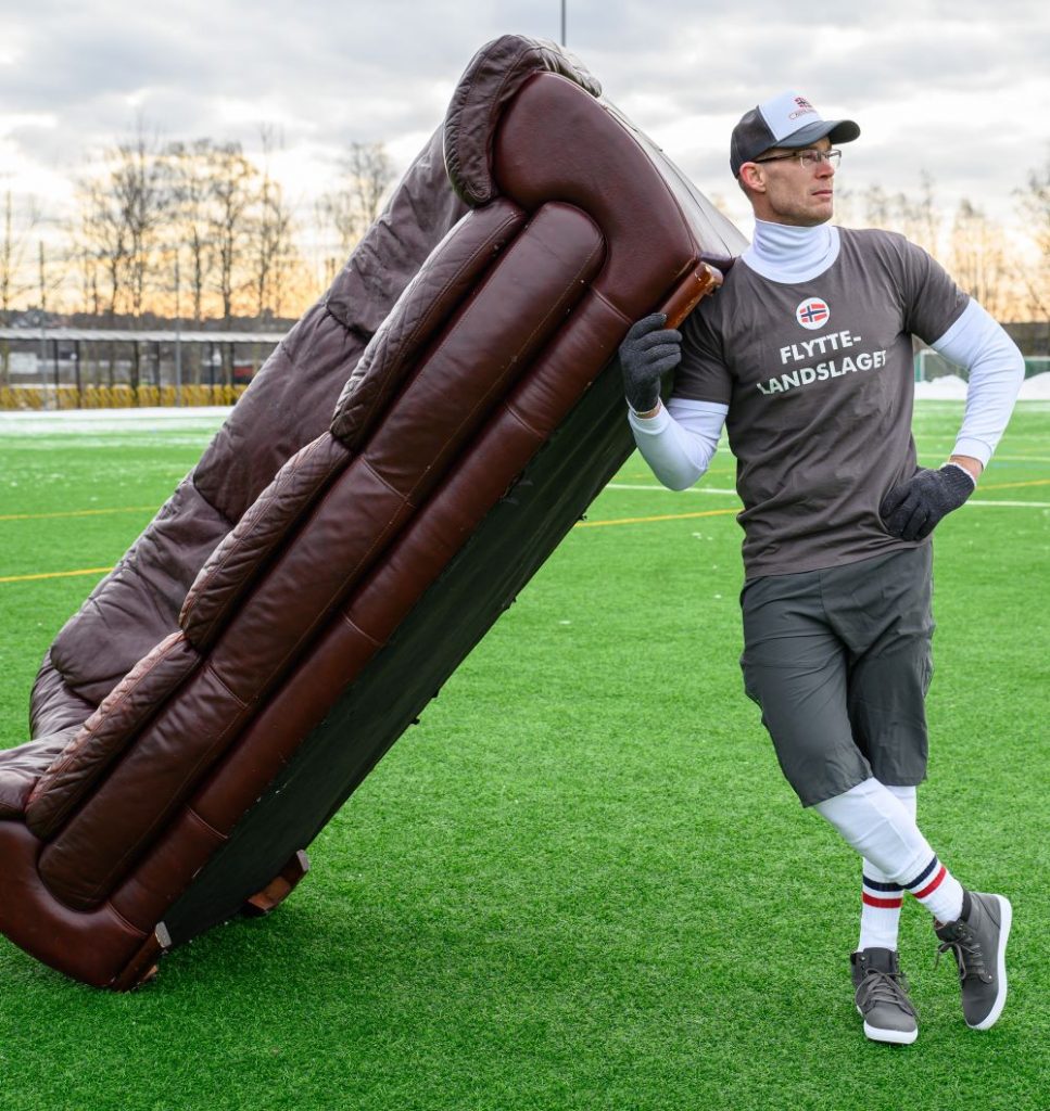 Etter et anonymt tips, rykket Flyttelandslaget ut til en adresse på Linderud i Oslo, og hentet det som må betegnes som den perfekte trenings-sofa. Vi snakker nemlig om et kompakt beist på nærmere 75 kilo.
